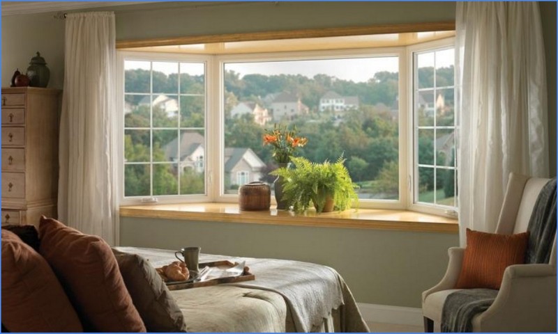 - Эркерное окно имеет большую площадь по сравнению с обычными прямоугольными рамами, расположенными в одной плоскости — такая планировка способствует увеличению освещенности в примыкающей комнате.