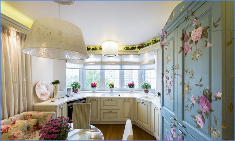 Кухня. Если эркерная зона находится в помещении с кухней, лучше поставить в ней обеденный стол, вид из окна и свежий воздух будет способствовать хорошему аппетиту и поднятию настроения во время приема пищи. Еще один популярный вариант – установка в эркерной нише кухонного гарнитура, на котором можно обрабатывать еду.
