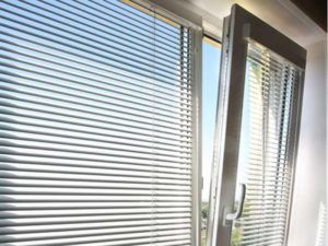 Если окна предполагаются постоянно открытыми на проветривание, но при этом требуется защита от солнца, тогда выбор за закреплёнными на створке окна роликовыми шторами или горизонтальными жалюзи.